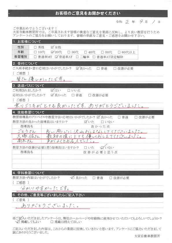 卒業生の声2020年9月