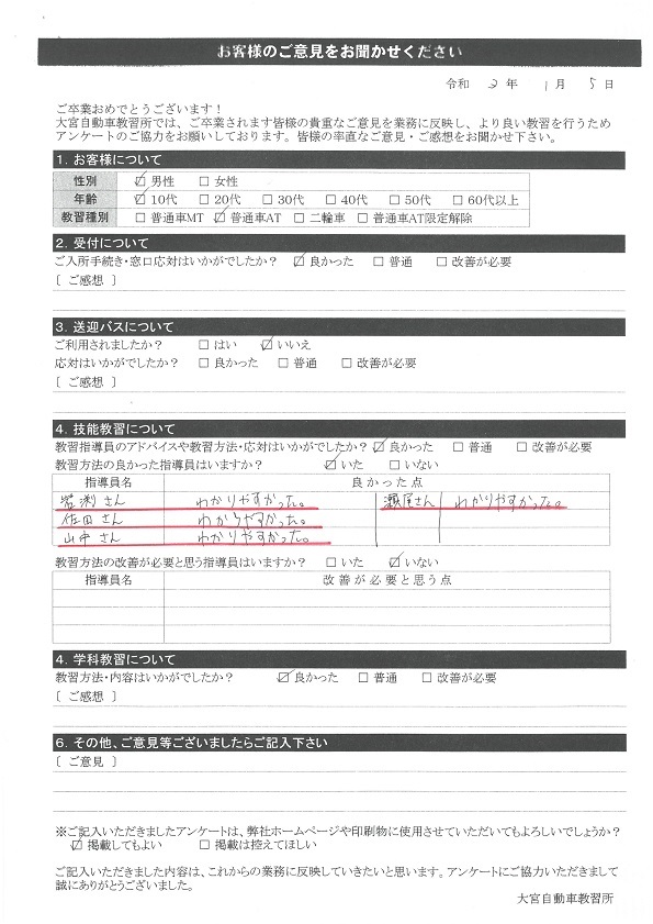 卒業生の声2021年1月