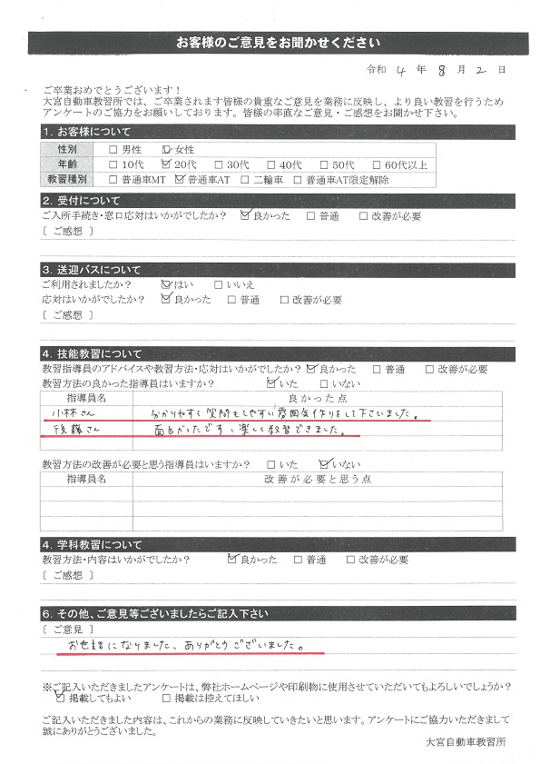 卒業生の声2022年8月
