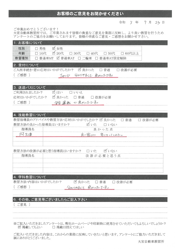 卒業生の声2023年7月