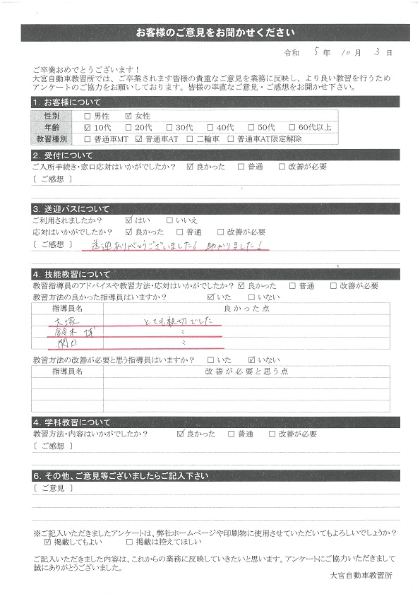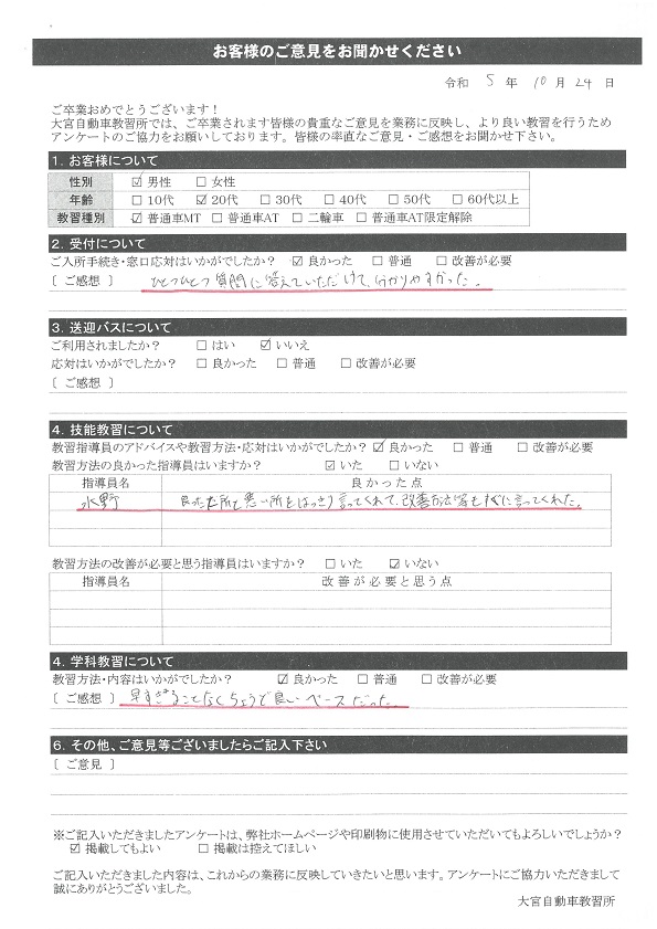 卒業生の声2023年10月
