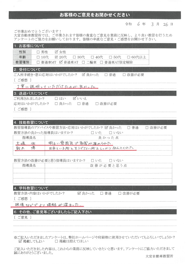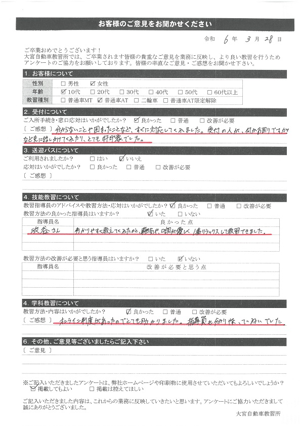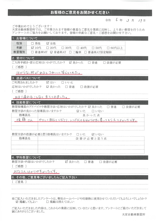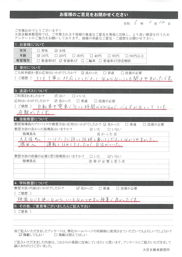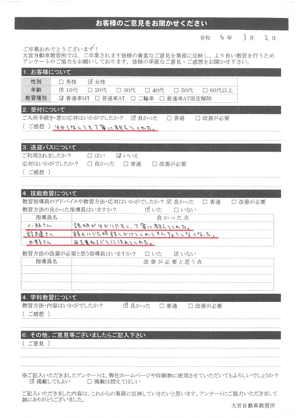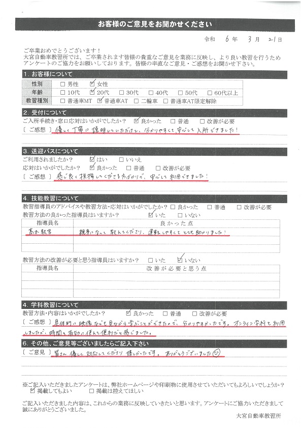 卒業生の声2024年3月