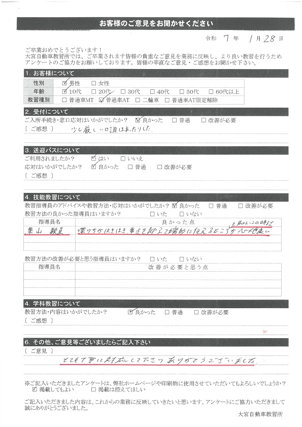 卒業生の声2025年1月