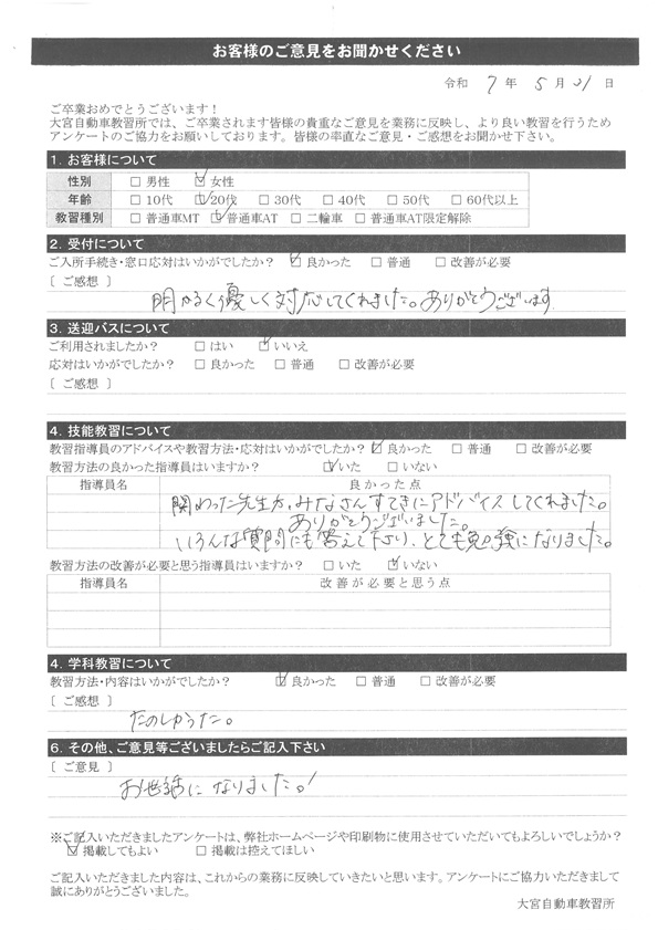 卒業生の声2025年5月