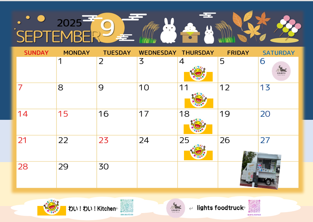 9月【キッチンカー出店カレンダー】