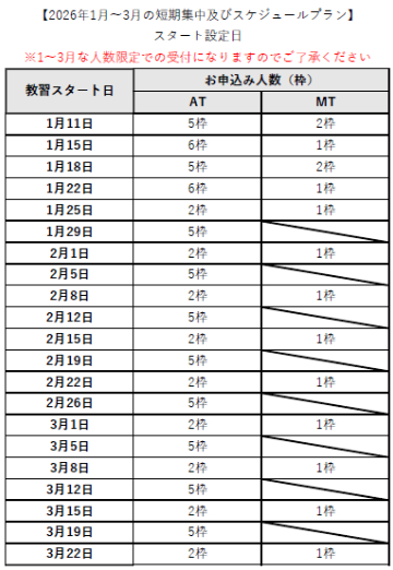 2026年1月中旬~3月下旬までの短期集中プランおよびスケジュールプランの受付を開始いたしました。