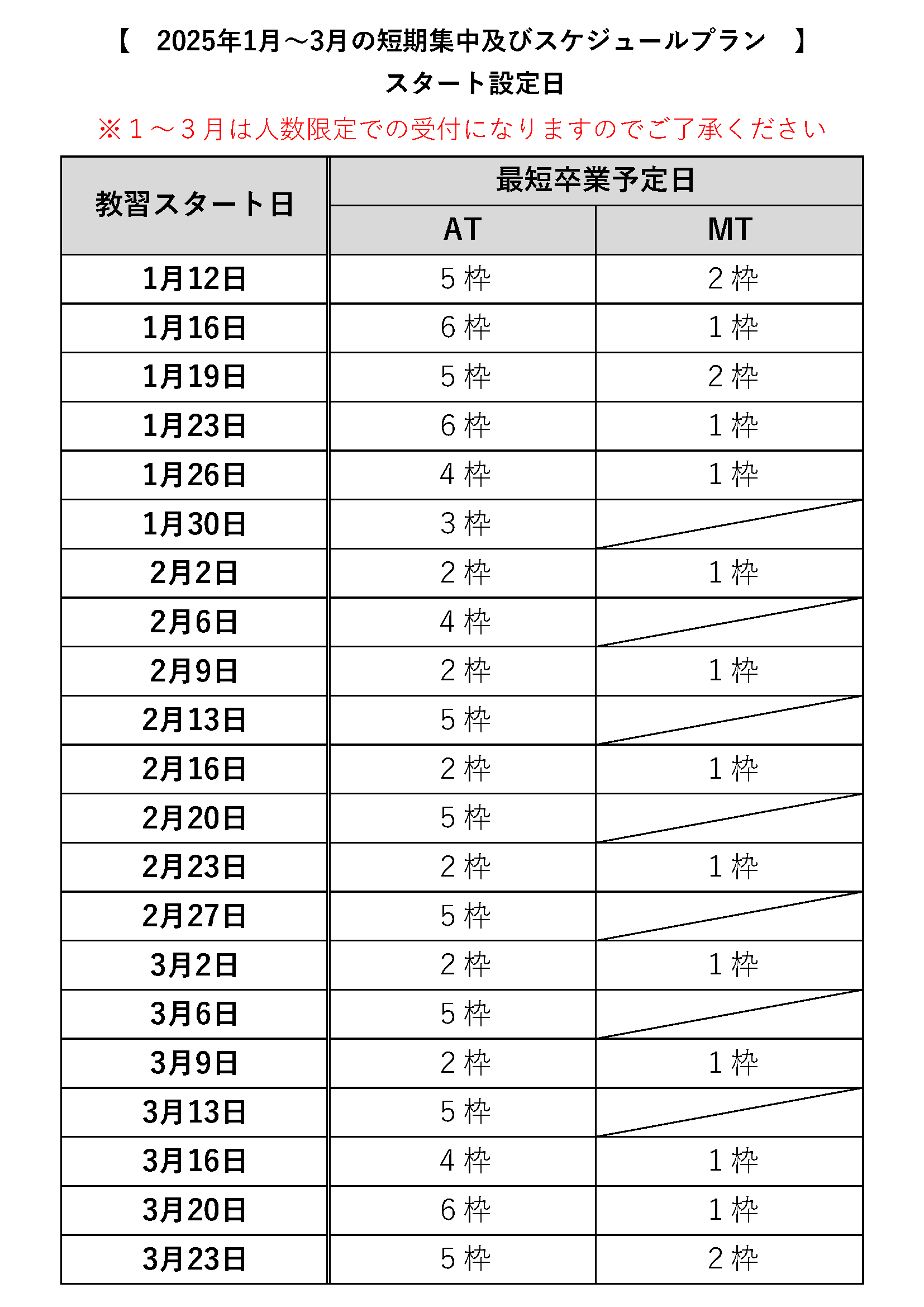 2025年1~3月の短期集中およびスケジュールプランの受付を開始しました!