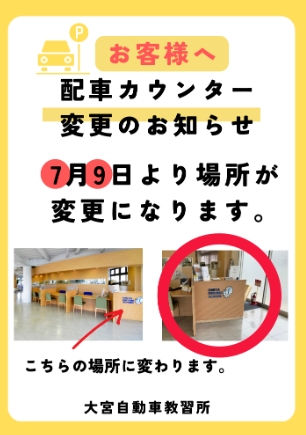 令和6年7月9日(火)より配車カウンター場所の移動をさせていただきます。