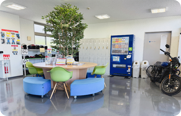 清潔感のある広々とした待合スペースで、リラックスして教習をお待ちいただけます。