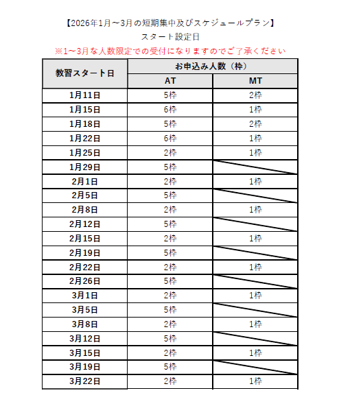 2026年1月中旬~3月下旬までの短期集中プランおよびスケジュールプランの受付を開始いたしました。